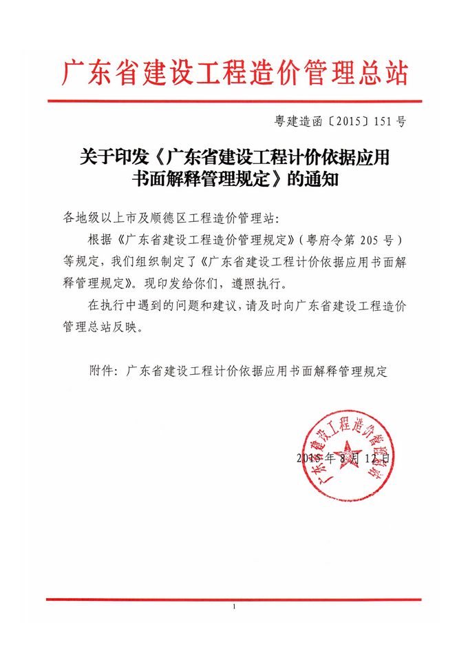 關(guān)于印發(fā)《廣東省建設(shè)工程計價依據(jù)應(yīng)用書面解釋管理規(guī)定》的通知