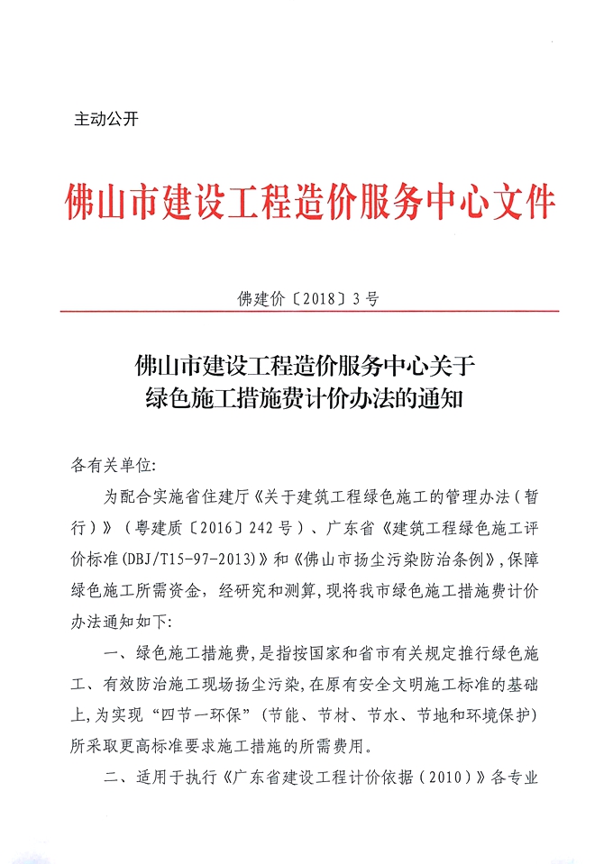 佛山市建設(shè)工程造價(jià)服務(wù)中心關(guān)于綠色施工措施費(fèi)計(jì)價(jià)辦法的通知