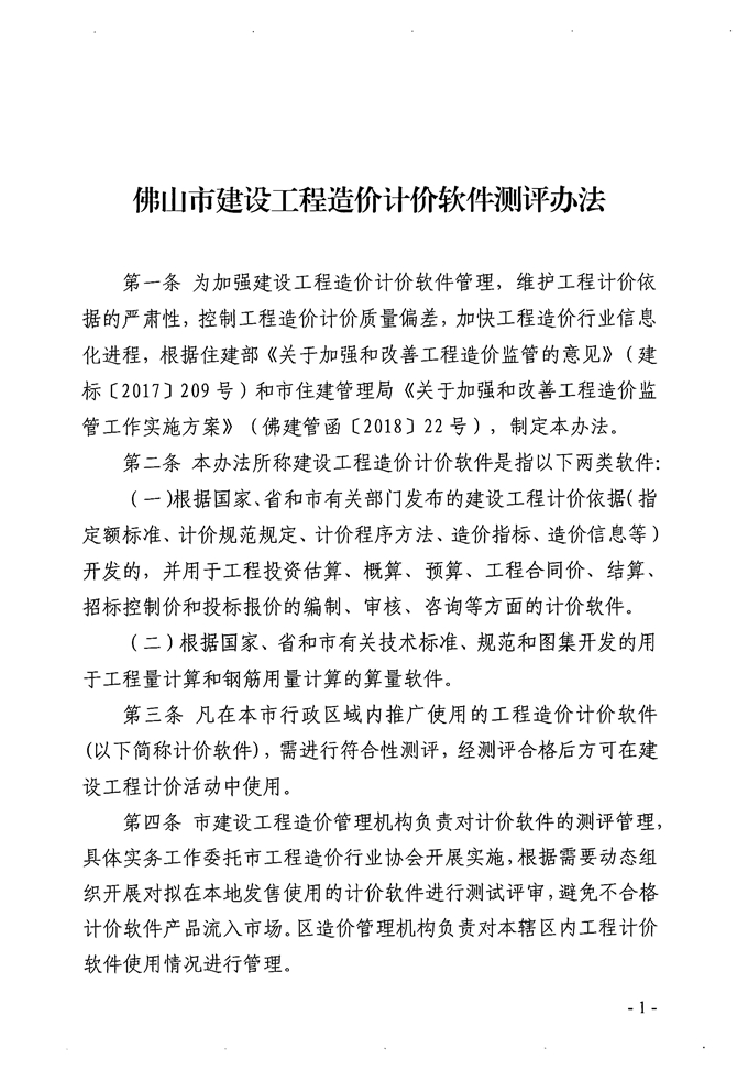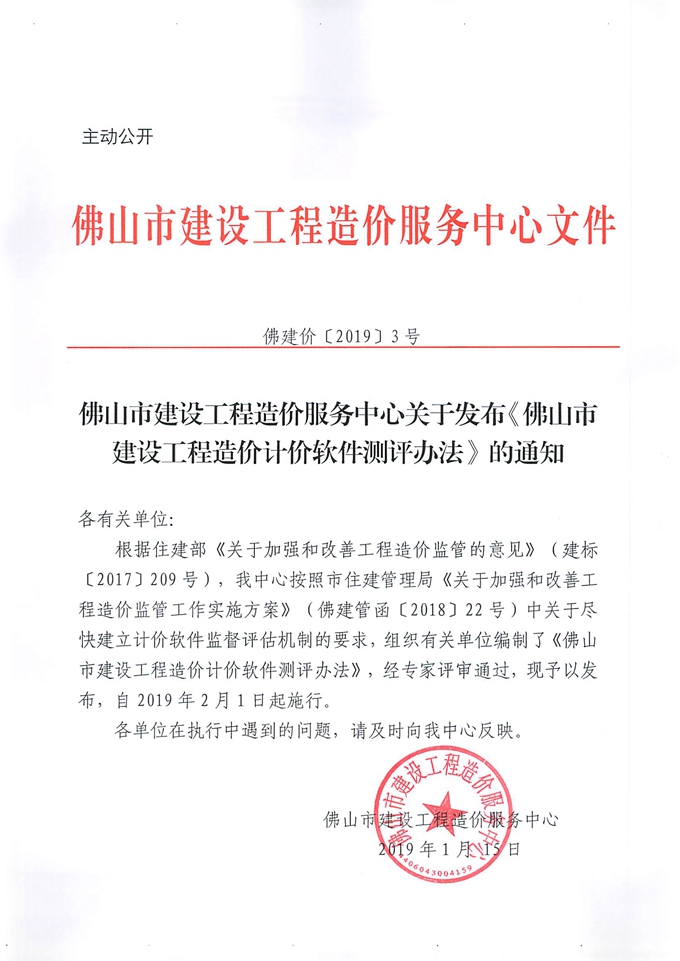 佛山市建設工程造價服務中心關于發布《佛山市建設工程造價計價軟件測評辦法》的通知