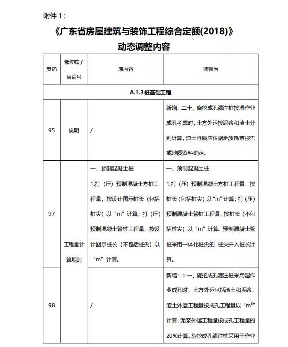 附件1:《廣東省房屋建筑與裝飾工程綜合定額(2018)》動態(tài)調整內(nèi)容及子目;