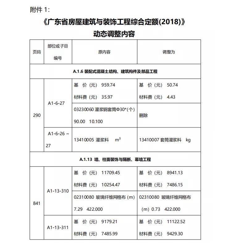 1、《廣東省房屋建筑與裝飾工程綜合定額(2018)》動(dòng)態(tài)調(diào)整內(nèi)容及子目;