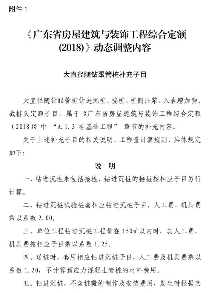 1.《廣東省房屋建筑與裝飾工程綜合定額(2018)》動態調整
