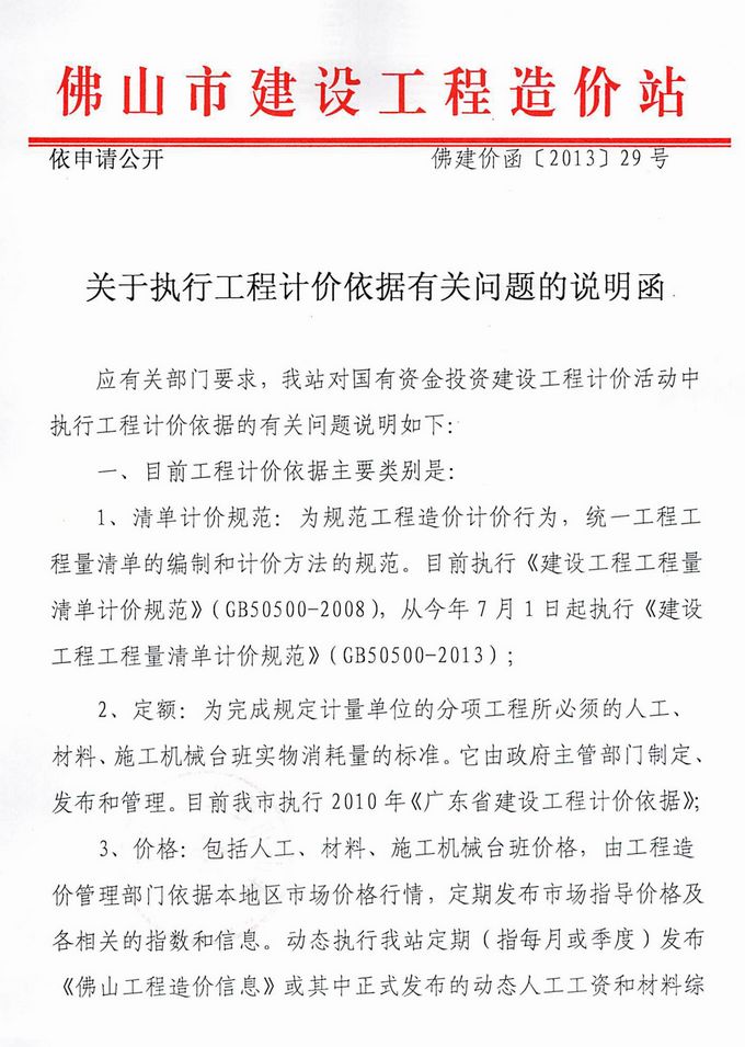 關(guān)于執(zhí)行工程計(jì)價(jià)依據(jù)有關(guān)問(wèn)題的說(shuō)明函