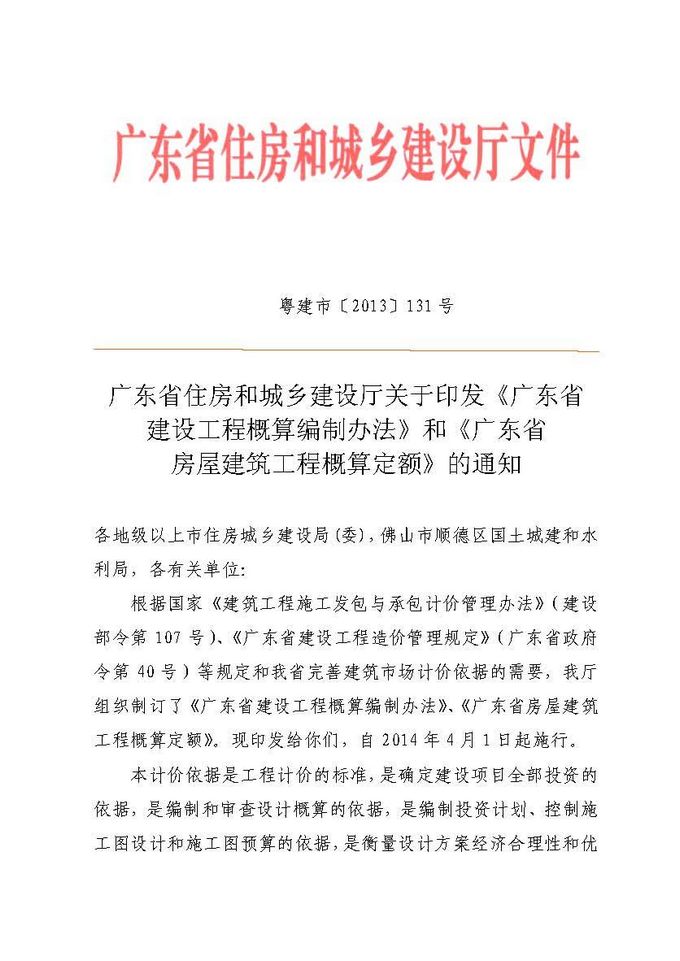 廣東省住房和城鄉(xiāng)建設(shè)廳關(guān)于印發(fā)《廣東省建設(shè)工程概算編制辦法》和《廣東省房屋建筑工程概算定額》的通知