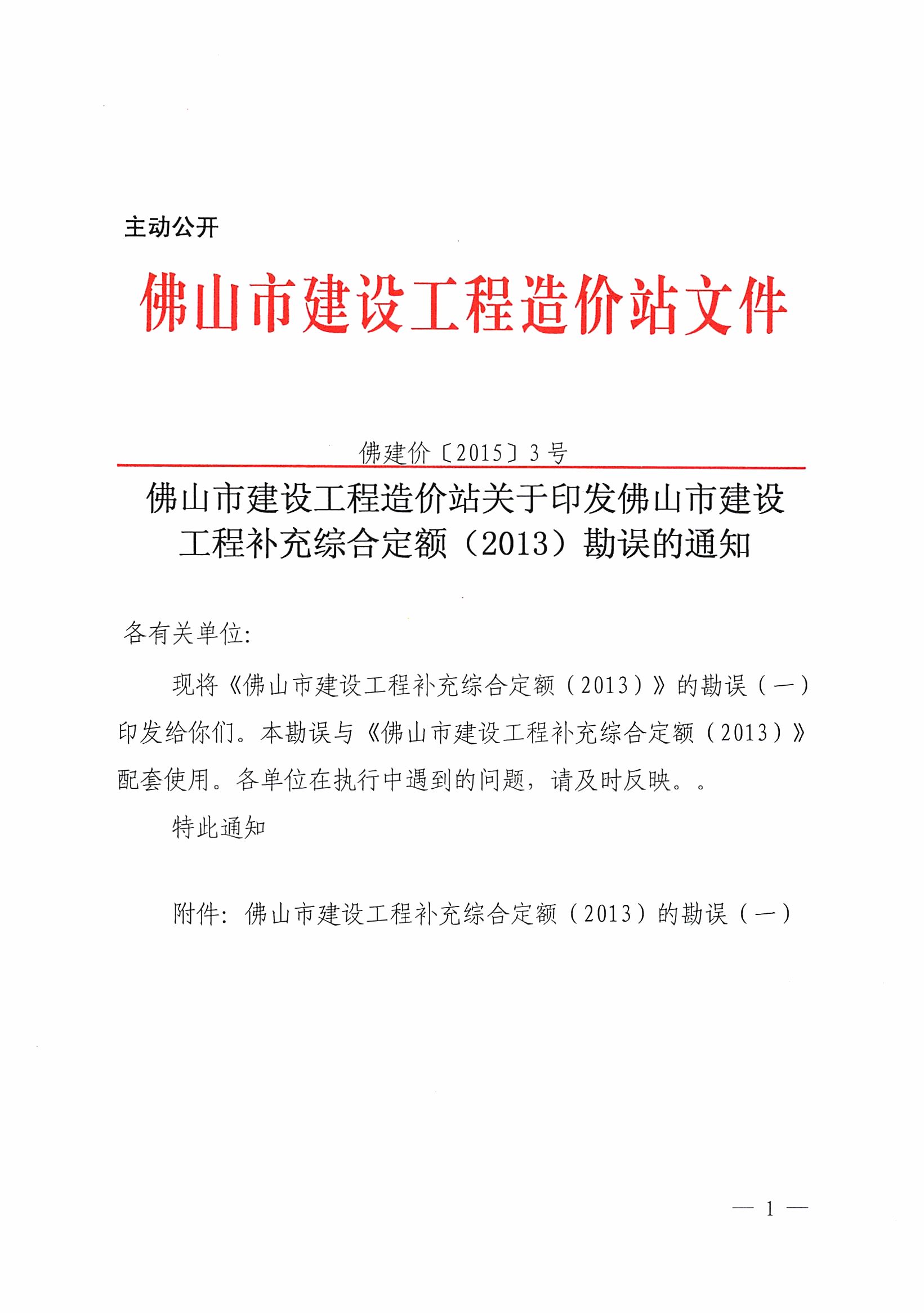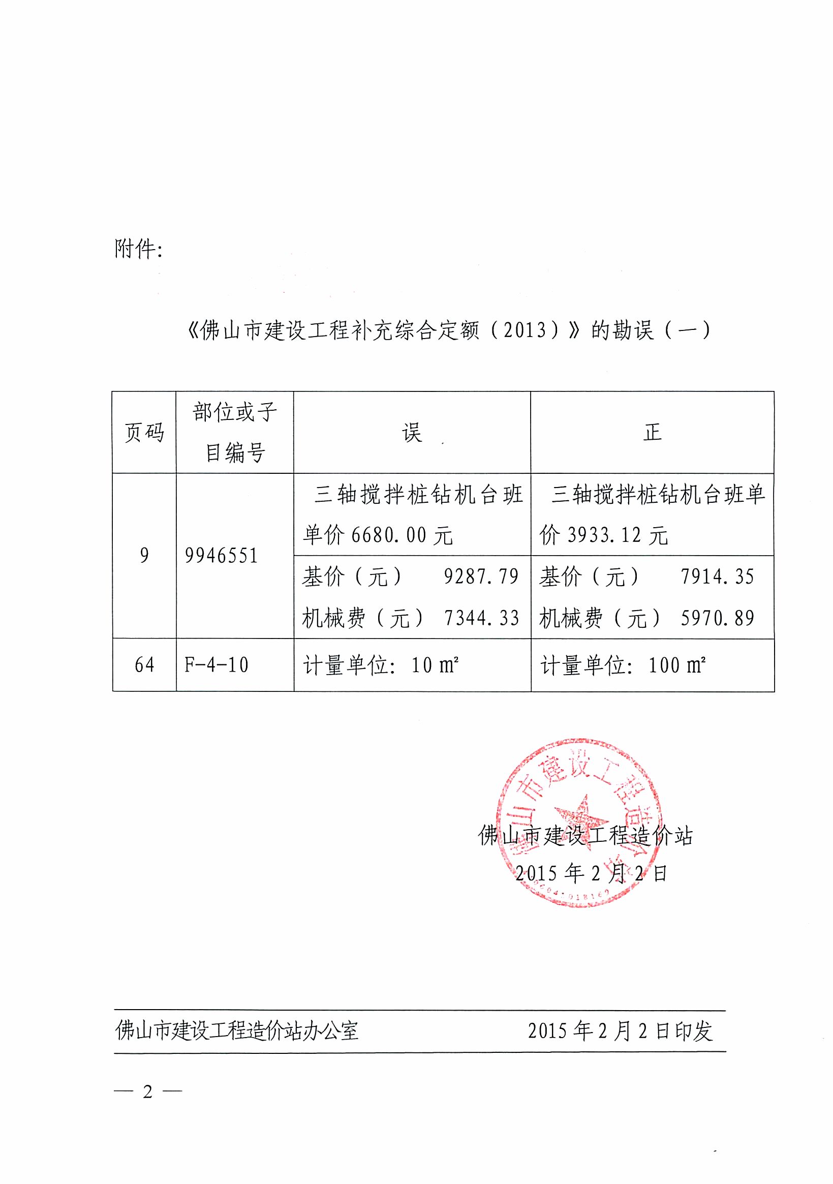 佛山市建設工程造價站關于印發佛山市建設工程補充定額(2013)勘誤的通知