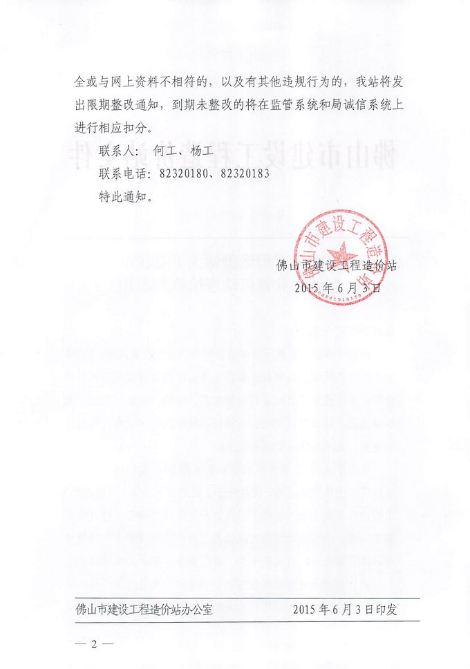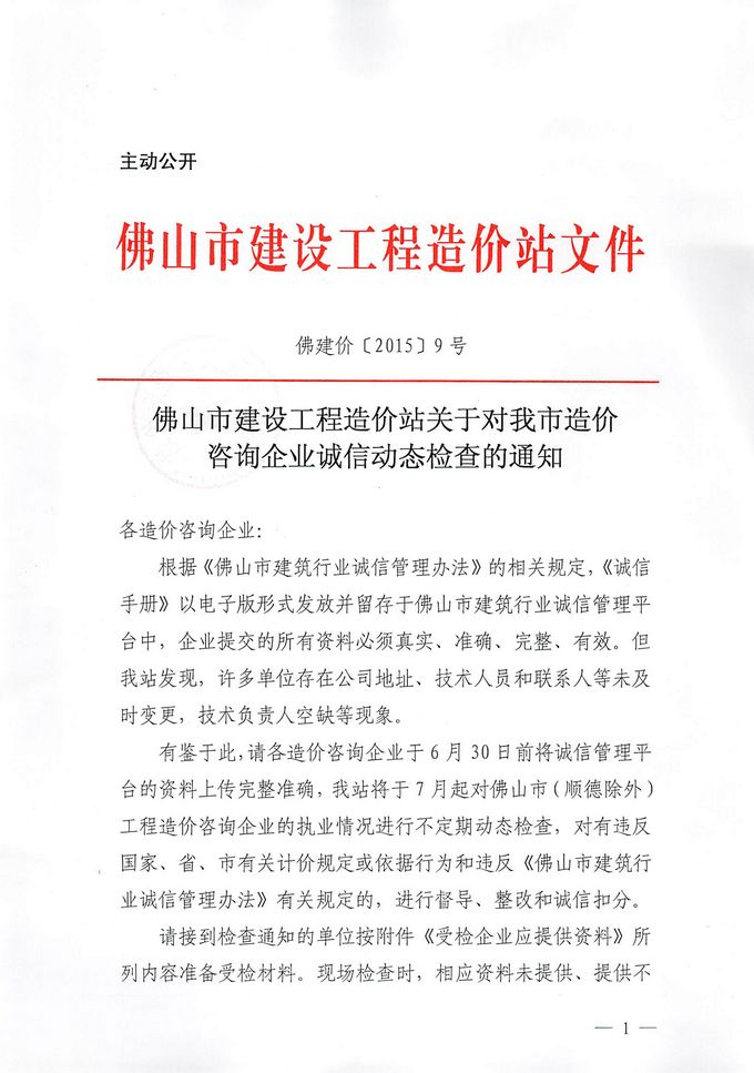 佛山市建設工程造價站關于對我市造價咨詢企業誠信動態檢查的通知
