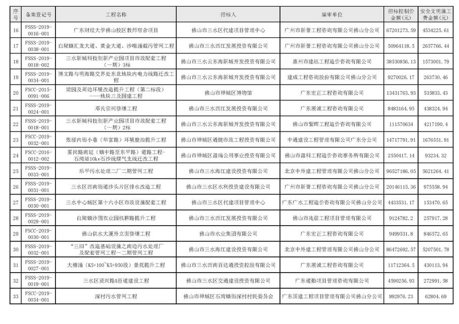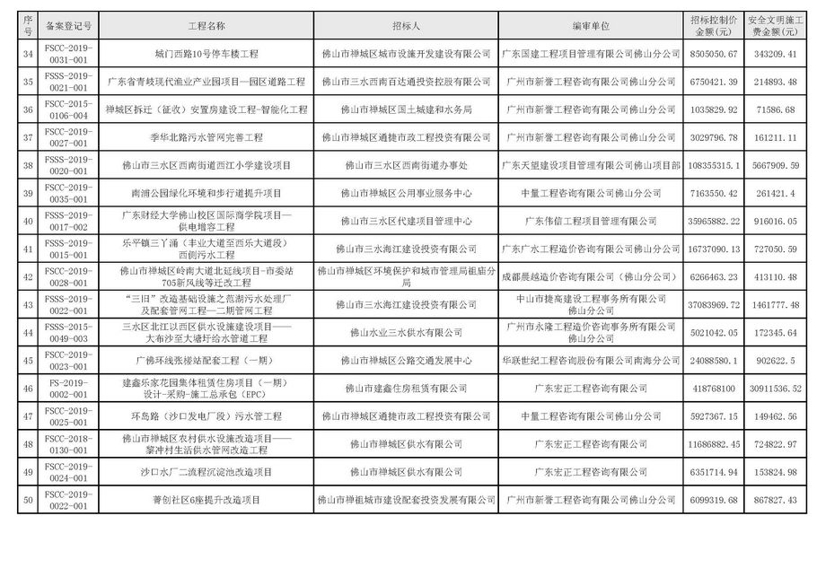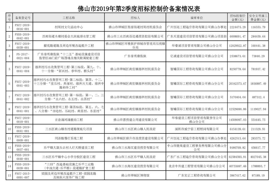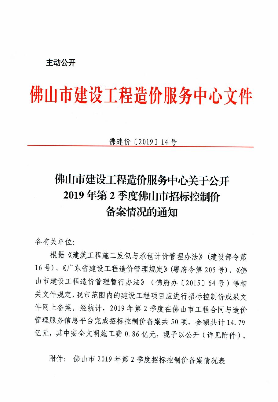 佛山市建設工程造價服務中心關于公開2019年第2季度佛山市招標控制價備案情況的通知