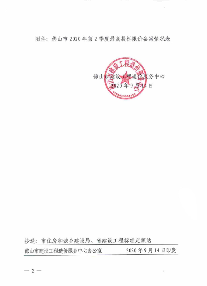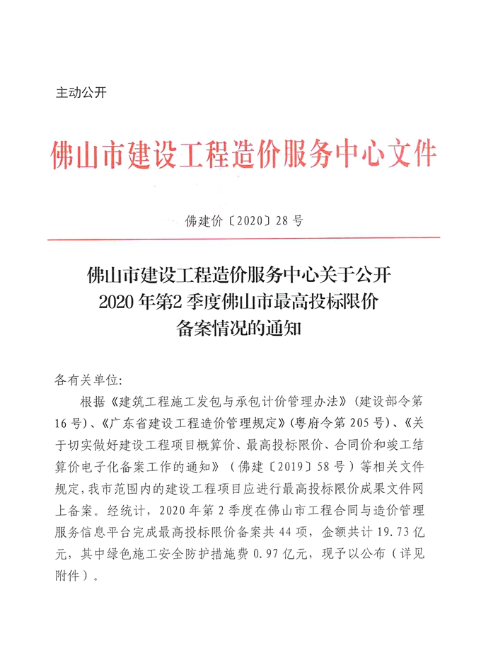 佛山市建設工程造價服務中心關于公開2020年第2季度佛山市最高投標限價備案情況的通知