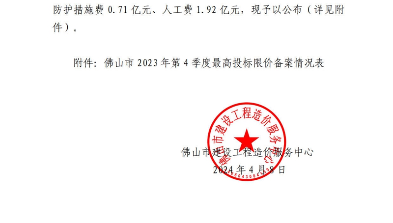 轉(zhuǎn)發(fā) | 佛山市建設(shè)工程造價服務(wù)中心關(guān)于公開2023年第4季度佛山市最高投標限價備案情況的通知
