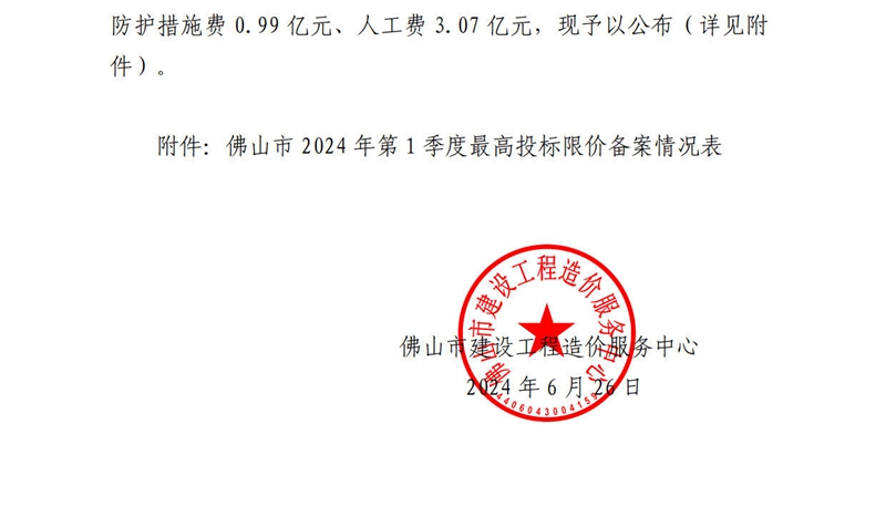 轉發 | 佛山市建設工程造價服務中心關于公開2024年第1季度佛山市最高投標限價備案情況的通知