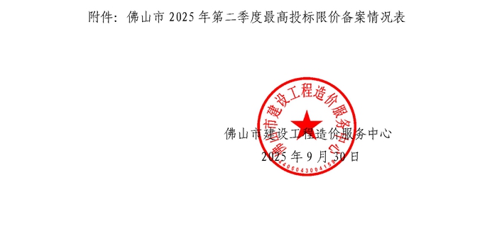 轉發 | 佛山市建設工程造價服務中心關于公開2025年第二季度佛山市最高投標限價備案情況的通知