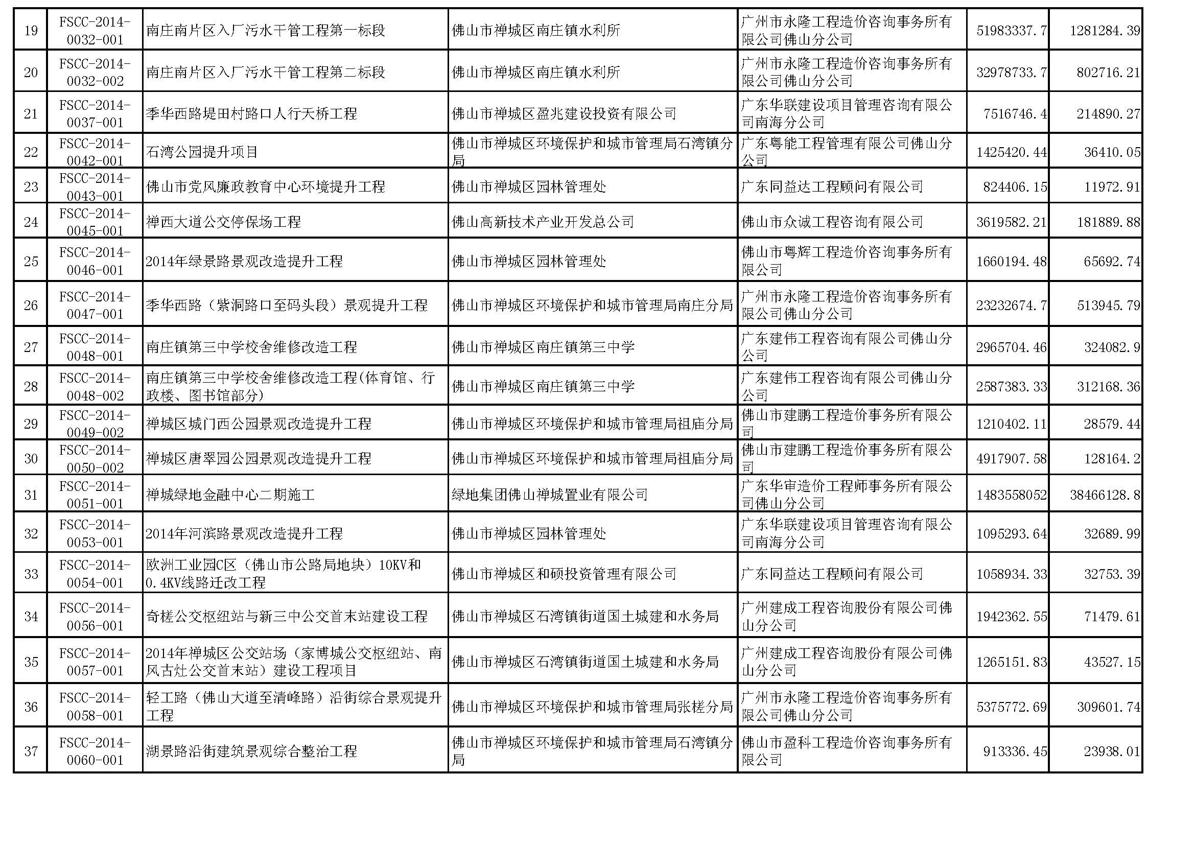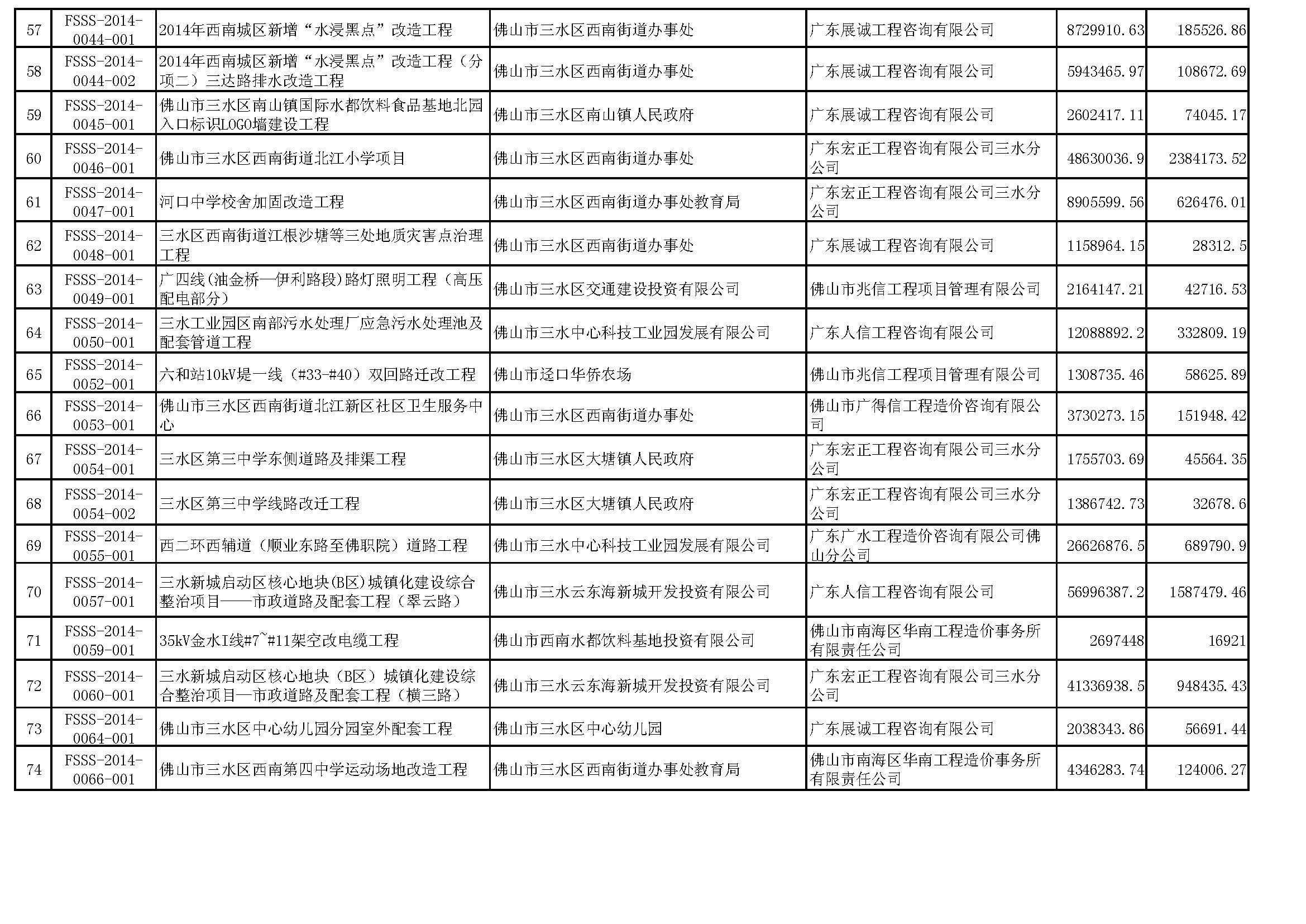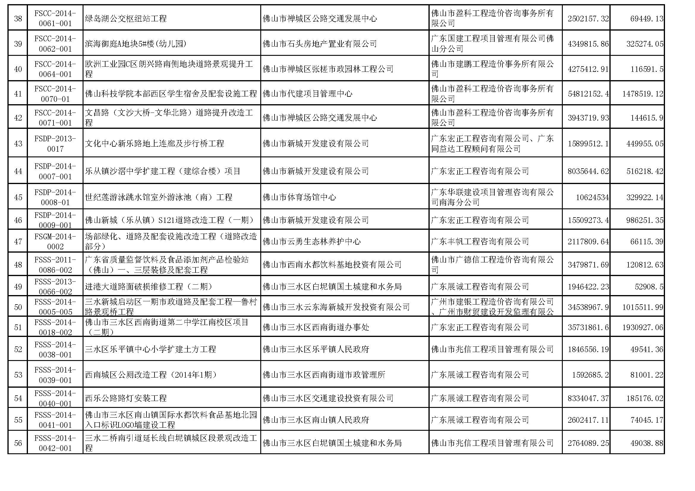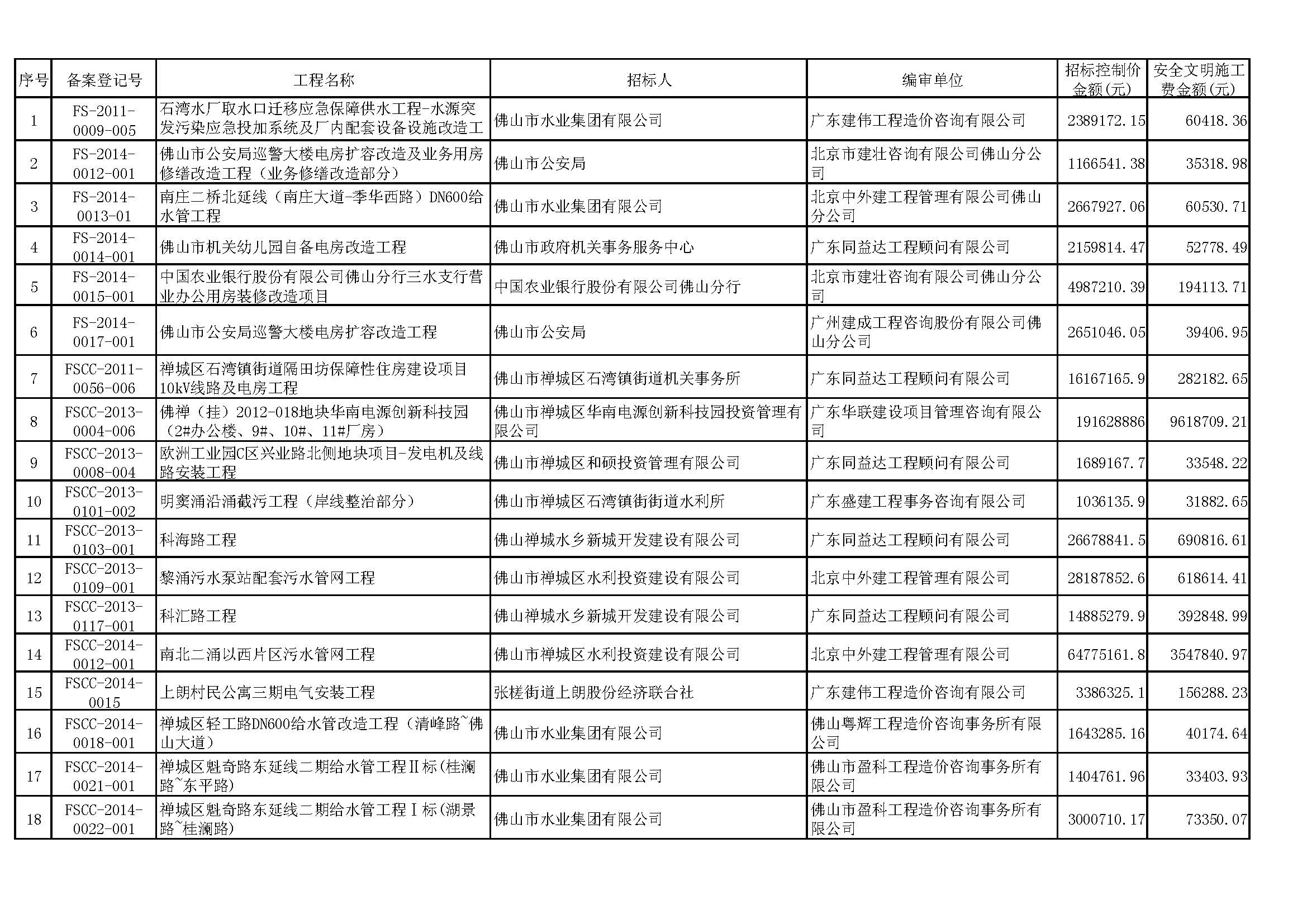 佛山市招標(biāo)控制價(jià)備案情況表(2014-07-01至2014-09-30)