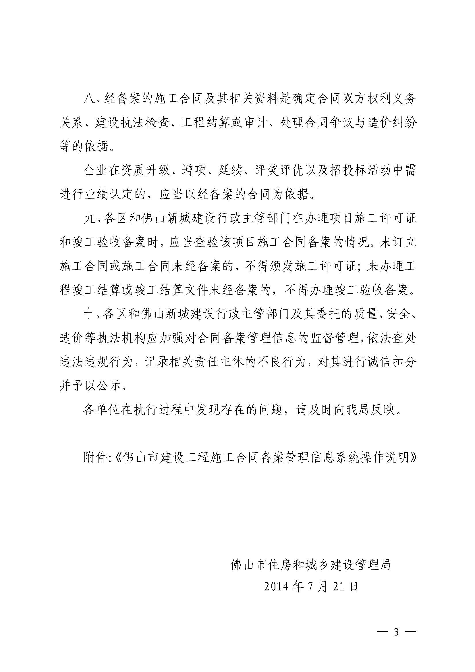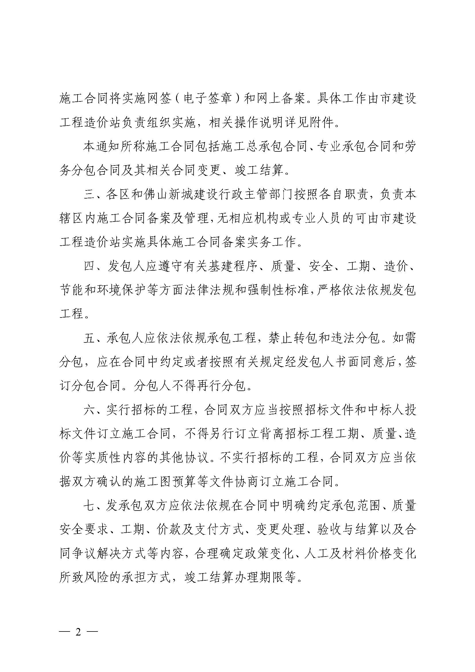 佛山市住房和城鄉(xiāng)建設(shè)管理局關(guān)于加強和規(guī)范建設(shè)工程施工合同備案管理工作的通知
