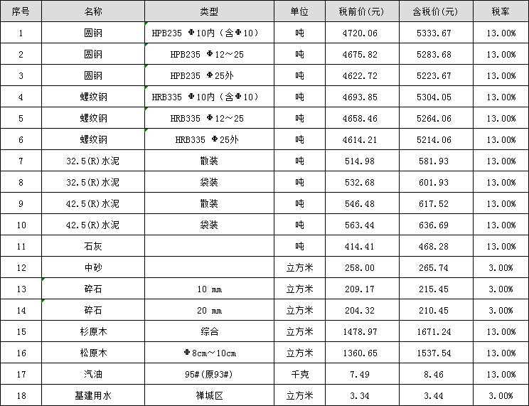 周轉(zhuǎn)材料租賃價(jià)格信息