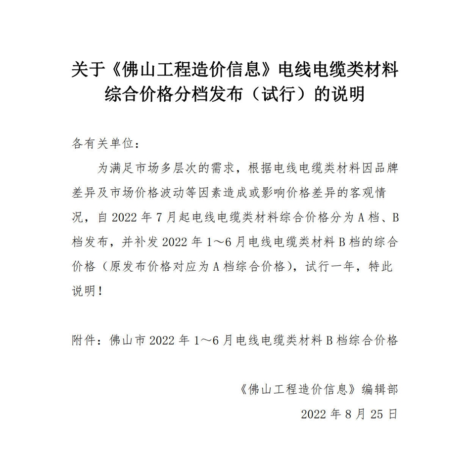 附件:佛山市2022年1~6月電線電纜類材料B檔綜合價格