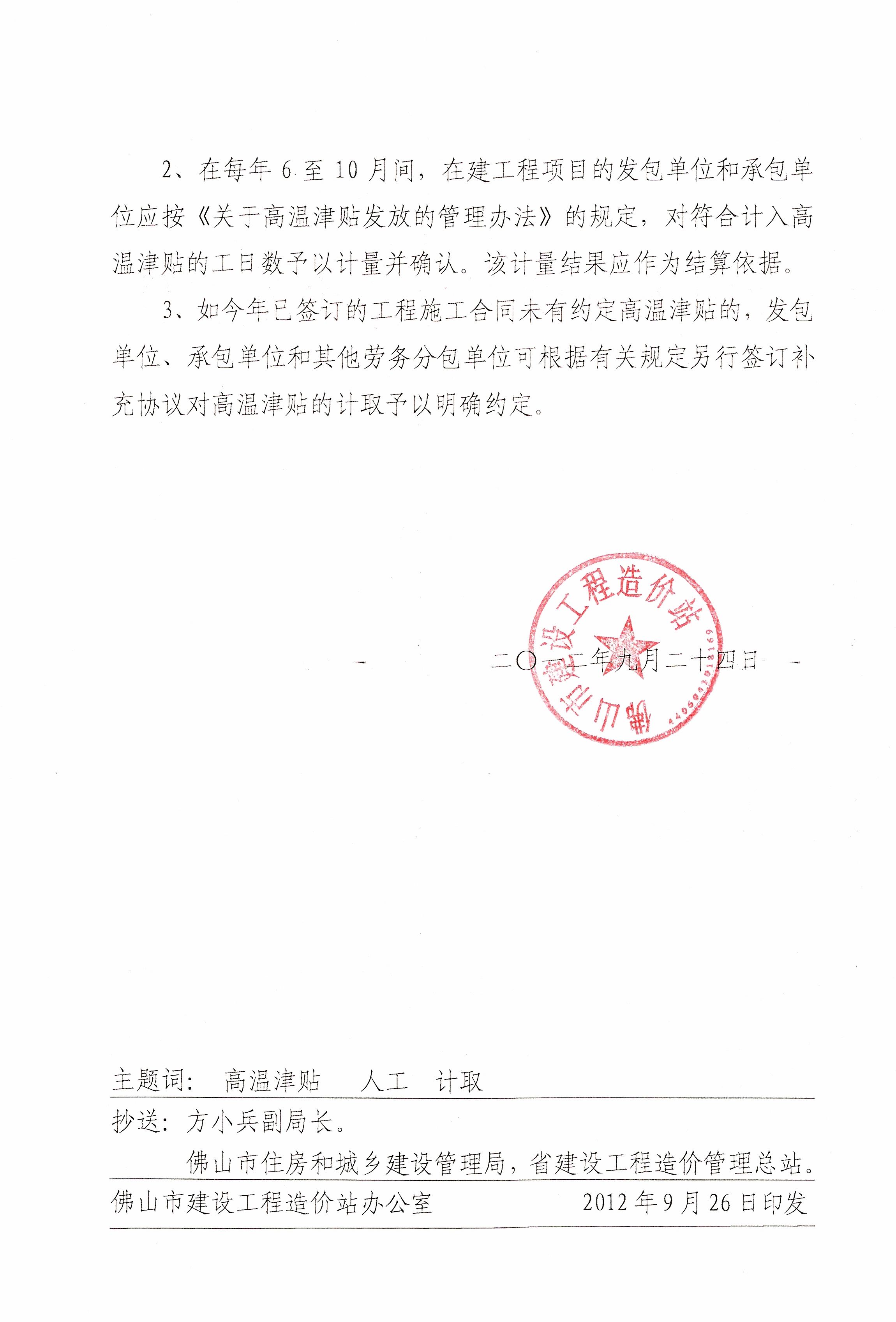 關于我市建設工程項目人工價格計取高溫津貼的通知