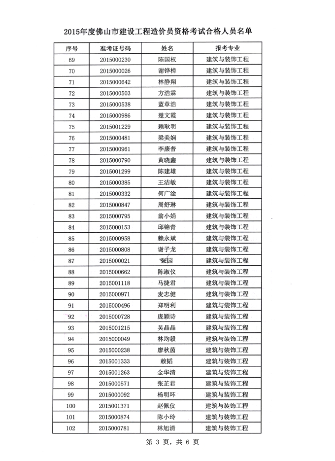 現(xiàn)將2015年全國建設(shè)工程造價員資格證書考試佛山考場合格人員名單公布如下,待其證制作完畢,屆時通知前往領(lǐng)取。