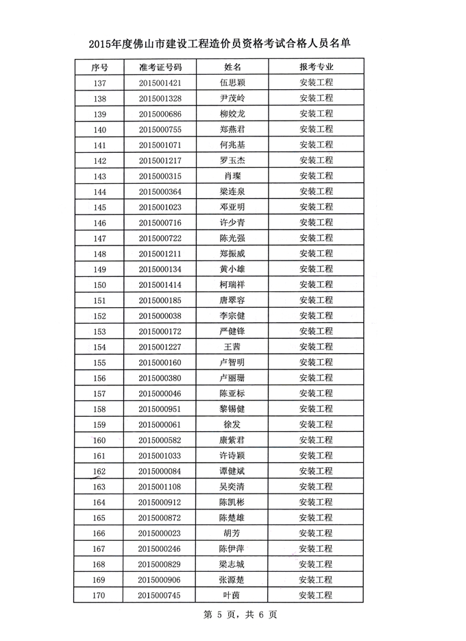 關(guān)于2015年度佛山市建設(shè)工程造價員資格考試結(jié)果的函