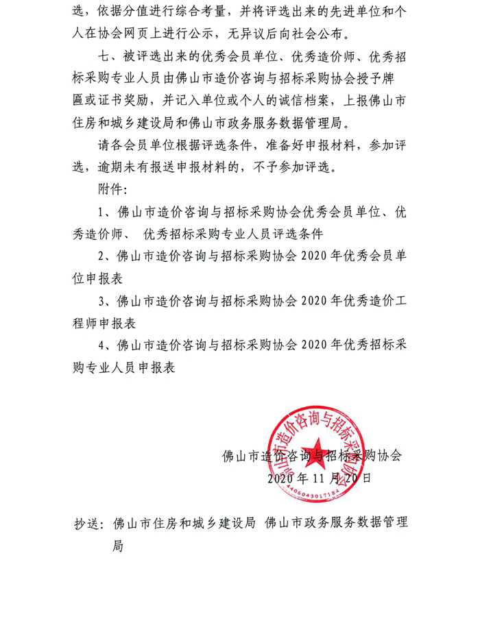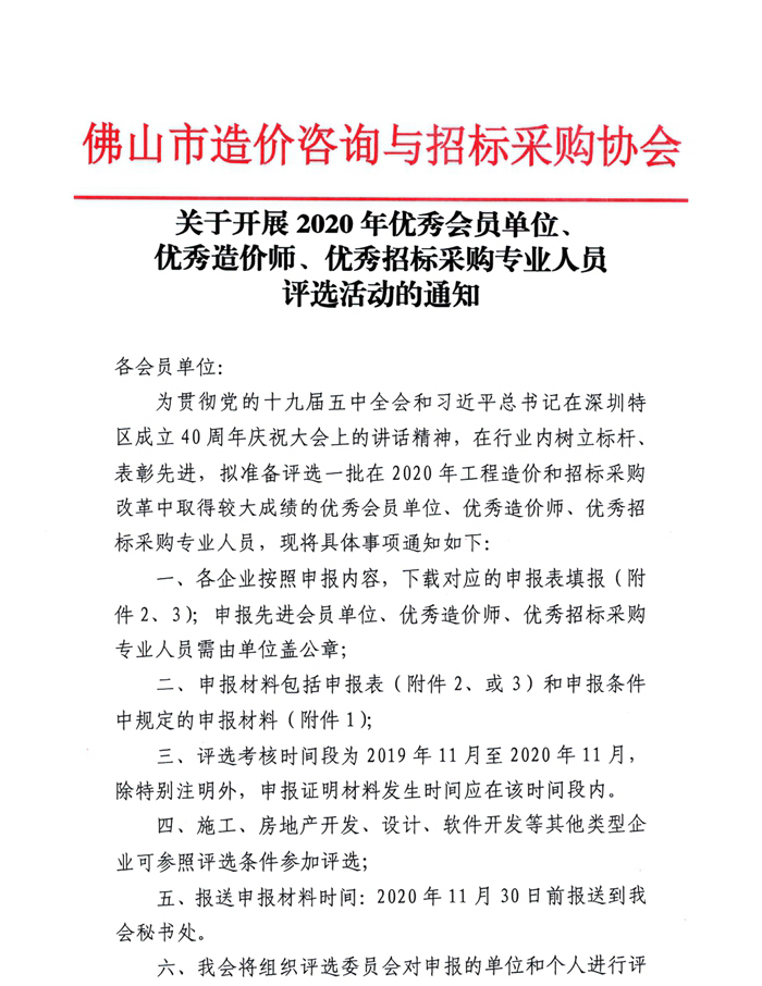 附件1:佛山市造價咨詢與招標采購協會2020年優(yōu)秀會員單位、優(yōu)秀造價師、優(yōu)秀招標采購專業(yè)人員評選條件