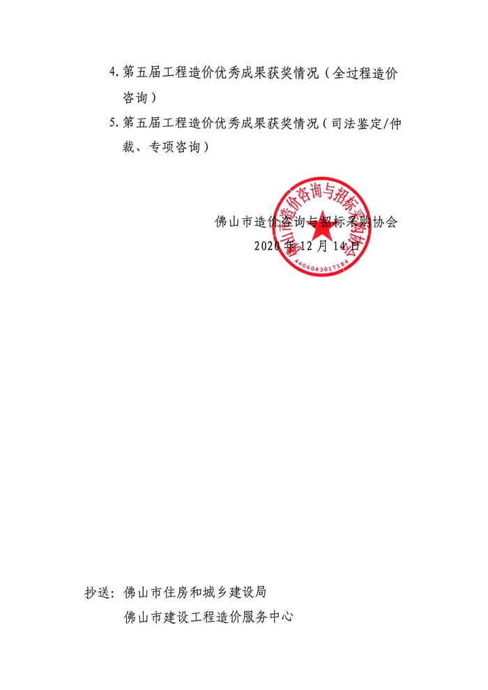 佛山市造價咨詢與招標采購協會關于第五屆工程造價優秀成果評選活動獲獎名單的通知