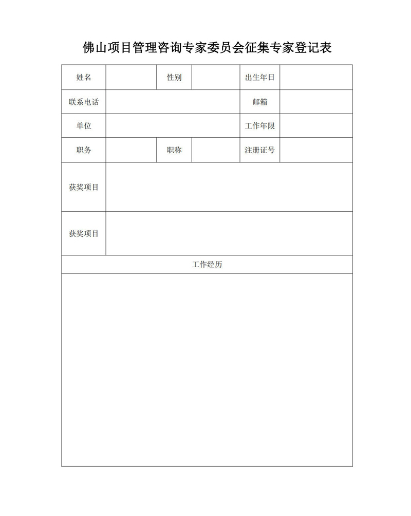 附件:佛山項目管理咨詢專家委員會征集專家登記表