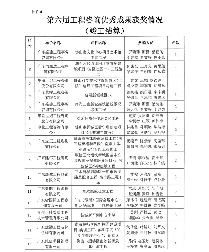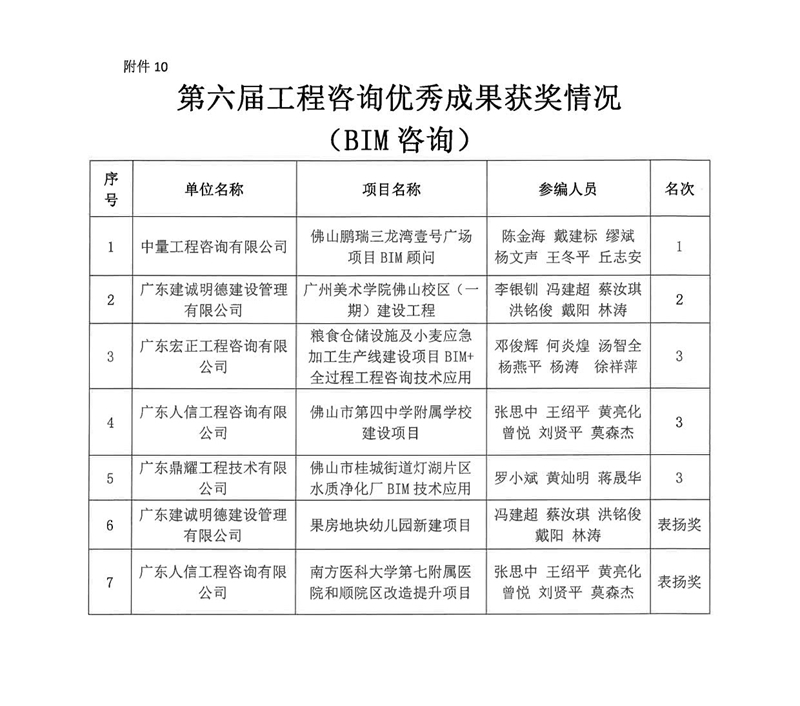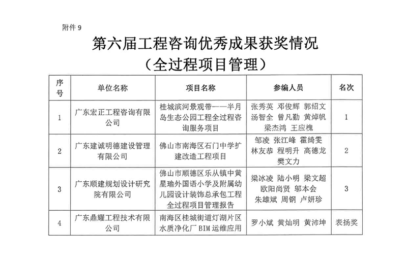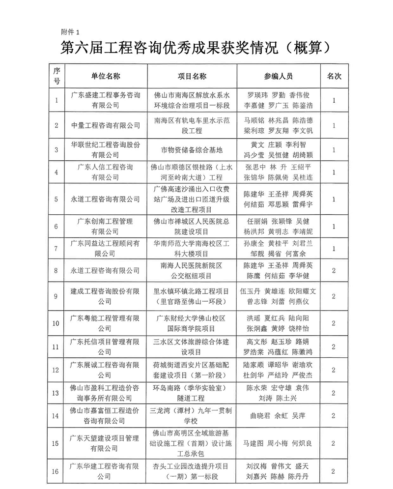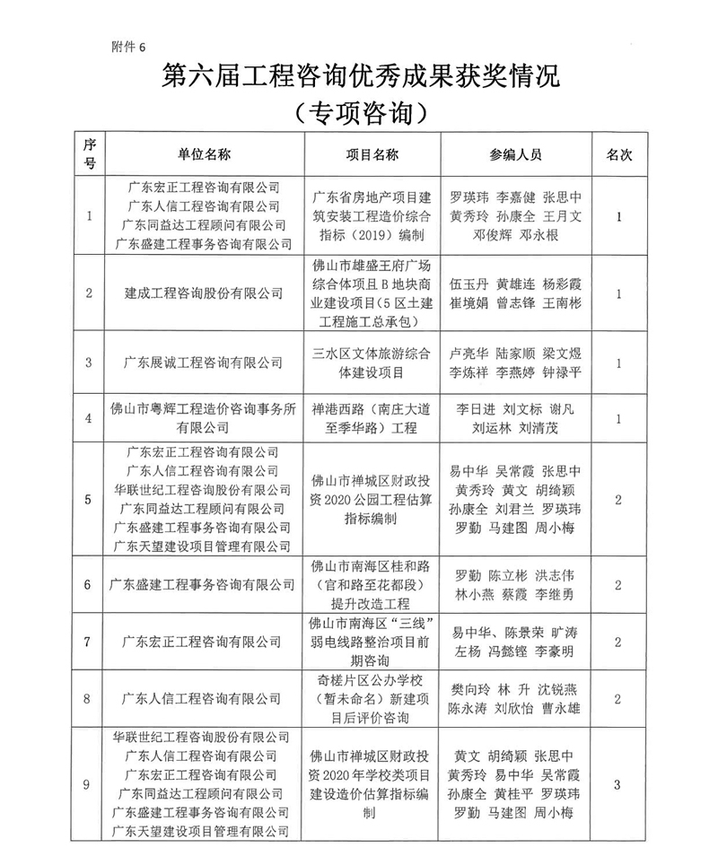 關(guān)于佛山市第六屆工程咨詢優(yōu)秀成果評選結(jié)果公示