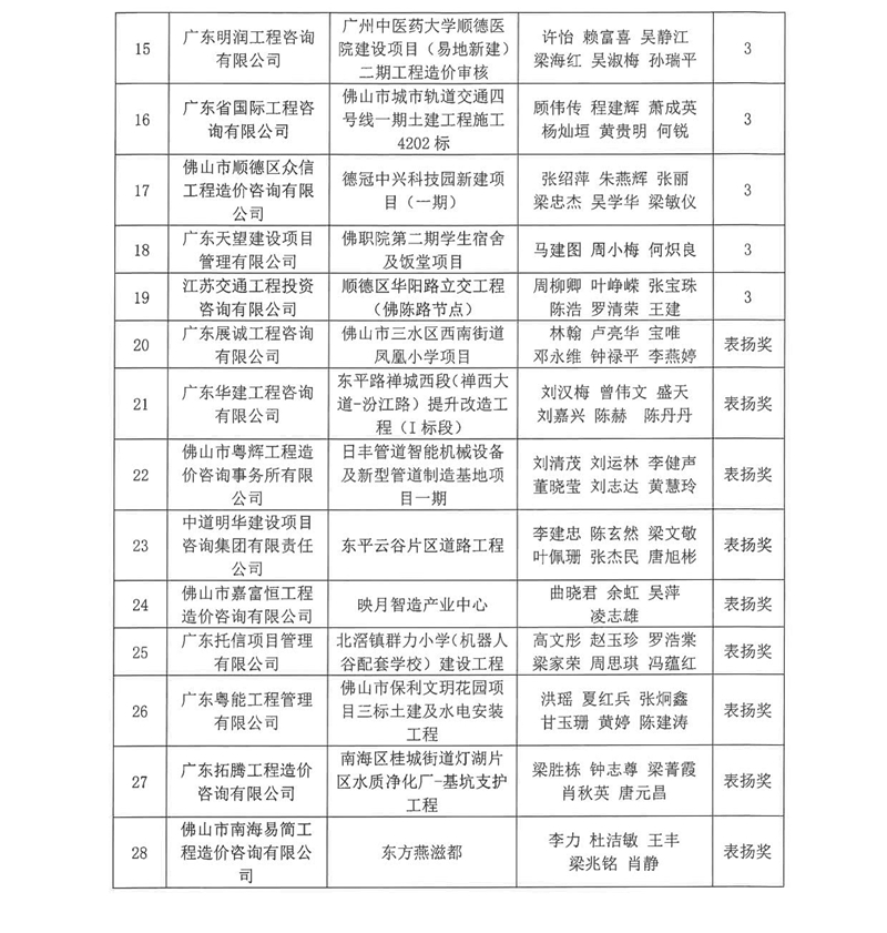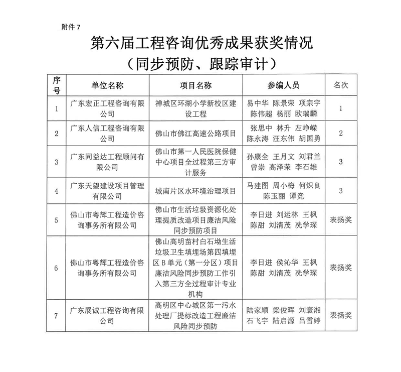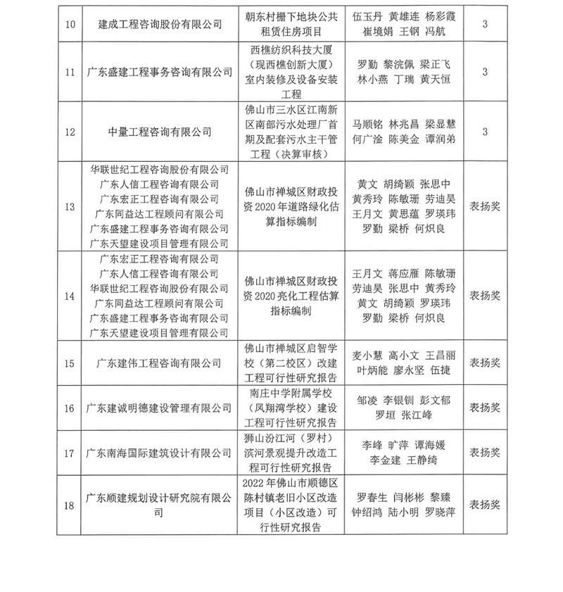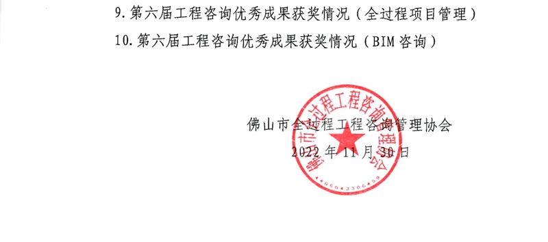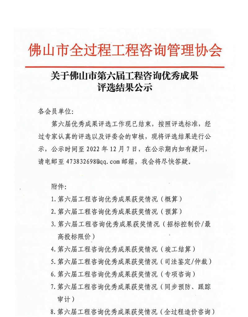 關(guān)于佛山市第六屆工程咨詢優(yōu)秀成果評選結(jié)果公示