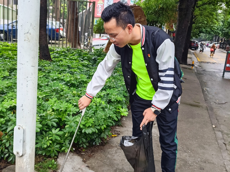 在行進過程中,參加活動的大家開啟另一重身份——環保公益志愿者,志愿者們拿著垃圾夾,將市民丟棄的垃圾,大的如塑料瓶、包裝袋,小的如煙頭、紙屑,全部裝入垃圾袋中,扶正被風雨吹倒的共享自行車,以實際行動宣傳垃圾分類、保護生態、創建文明城市的理念,倡導節能減排、低碳出行,為佛山打造綠色宜居環境貢獻社會組織的一份力量。