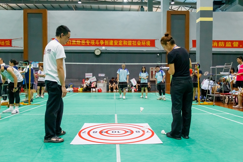 比賽賽制為團(tuán)體賽,設(shè)三個(gè)單項(xiàng)分別是:男子雙打、女子雙打、混合雙打,第一階段采用分組循環(huán)賽制,第二階段采用單淘汰賽方式,最終決出團(tuán)體賽的前8名。為增加運(yùn)動(dòng)員的參與熱度,活動(dòng)賽場(chǎng)氛圍,比賽還增設(shè)了男女混合3人對(duì)抗賽和趣味定點(diǎn)投準(zhǔn)比賽。