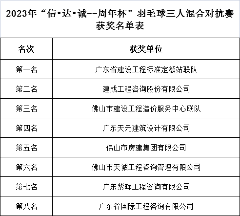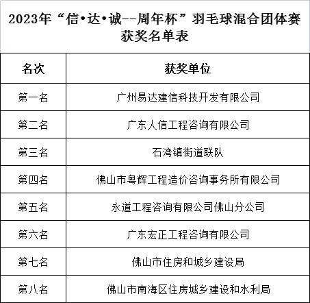 “羽”眾不同 誰(shuí)“羽”爭(zhēng)鋒 | 佛山市全過(guò)程工程咨詢(xún)管理協(xié)會(huì)2023年“信?達(dá)?誠(chéng)--周年杯”羽毛球團(tuán)體賽圓滿(mǎn)落幕