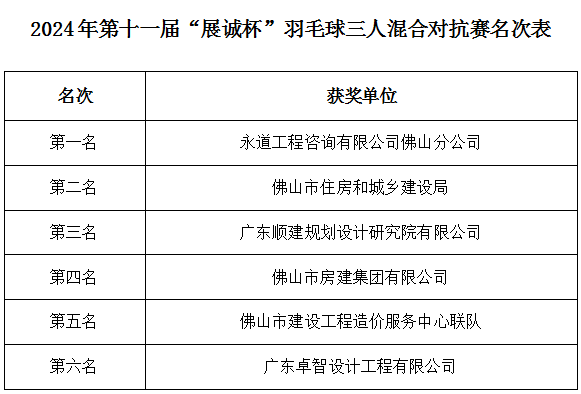 “展誠”相遇 無“羽”倫比 | 佛山市全過程工程咨詢管理協會2024年第十一屆“展誠杯”羽毛球團體賽圓滿落幕
