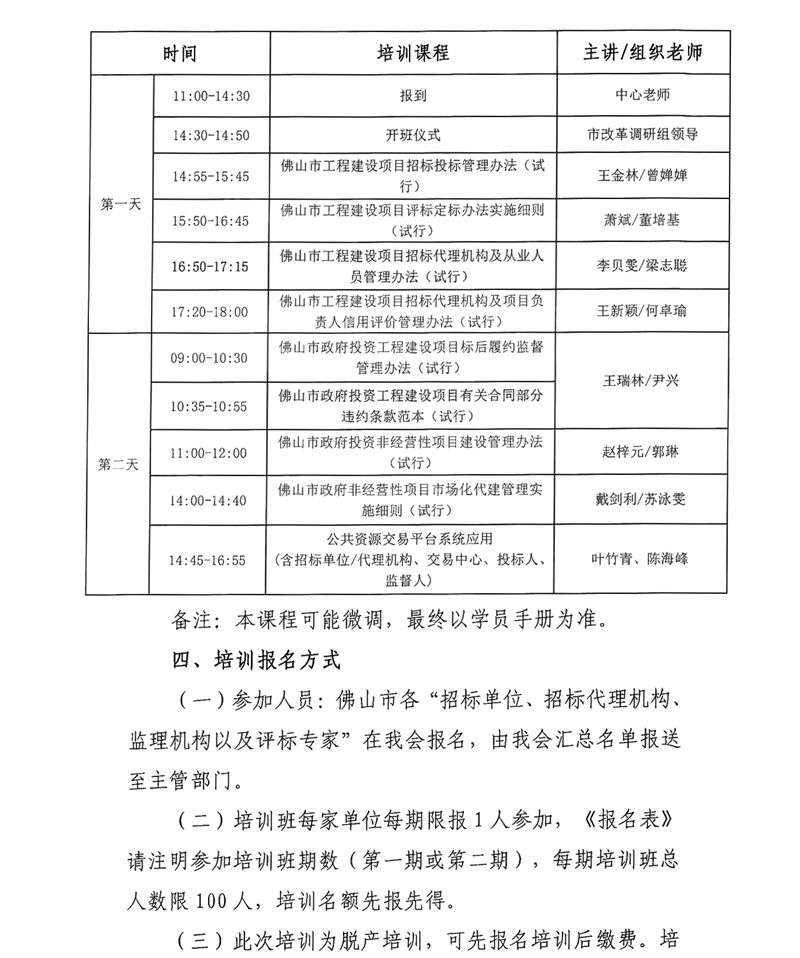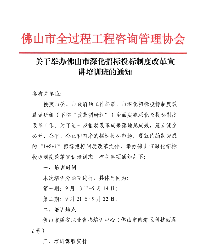 關(guān)于舉辦佛山市深化招標(biāo)投標(biāo)制度改革宣講培訓(xùn)班的通知