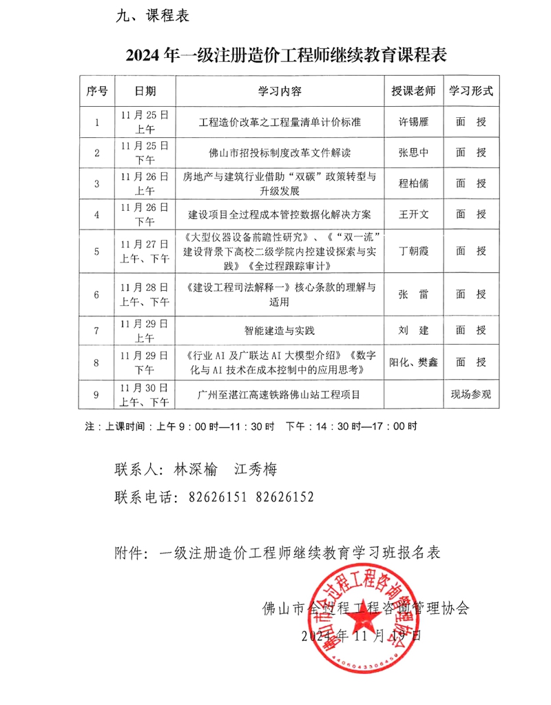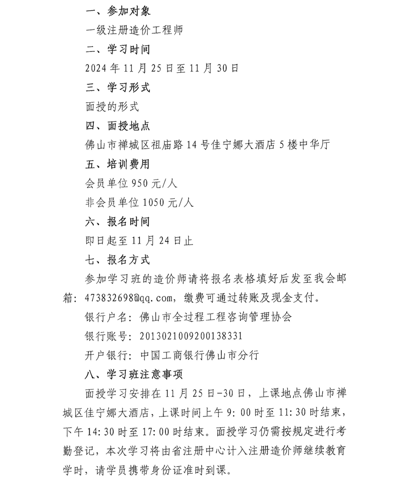 關于舉辦2024年一級注冊造價工程師繼續教育面授班的通知