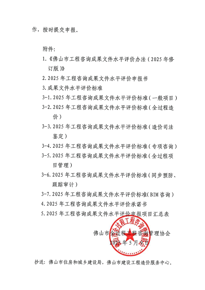 關(guān)于開展2025年佛山市第八屆工程咨詢成果文件水平評價活動的通知