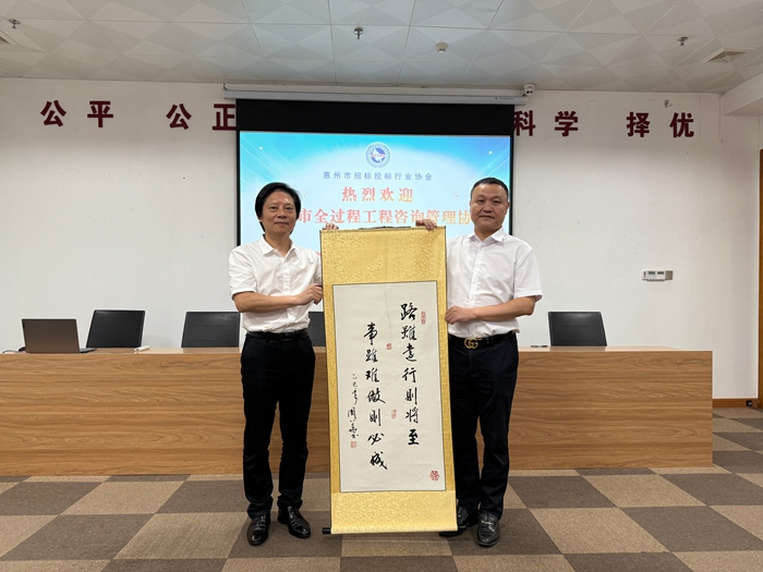 惠州市招標(biāo)投標(biāo)行業(yè)協(xié)會陳榮康會長向我會贈送紀(jì)念品