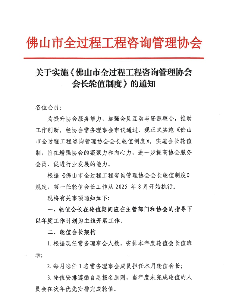 關于實施《佛山市全過程工程咨詢管理協會會長輪值制度》的通知