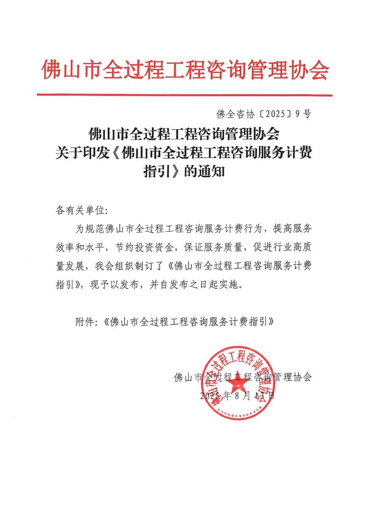 佛山市全過(guò)程工程咨詢管理協(xié)會(huì)關(guān)于印發(fā)《佛山市全過(guò)程工程咨詢服務(wù)計(jì)費(fèi)指引》的通知