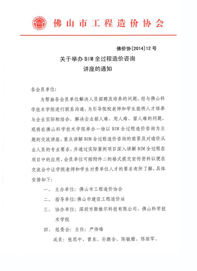 關于在佛山科學技術學院舉辦BIM全過程造價咨詢講座的通知--附件.doc