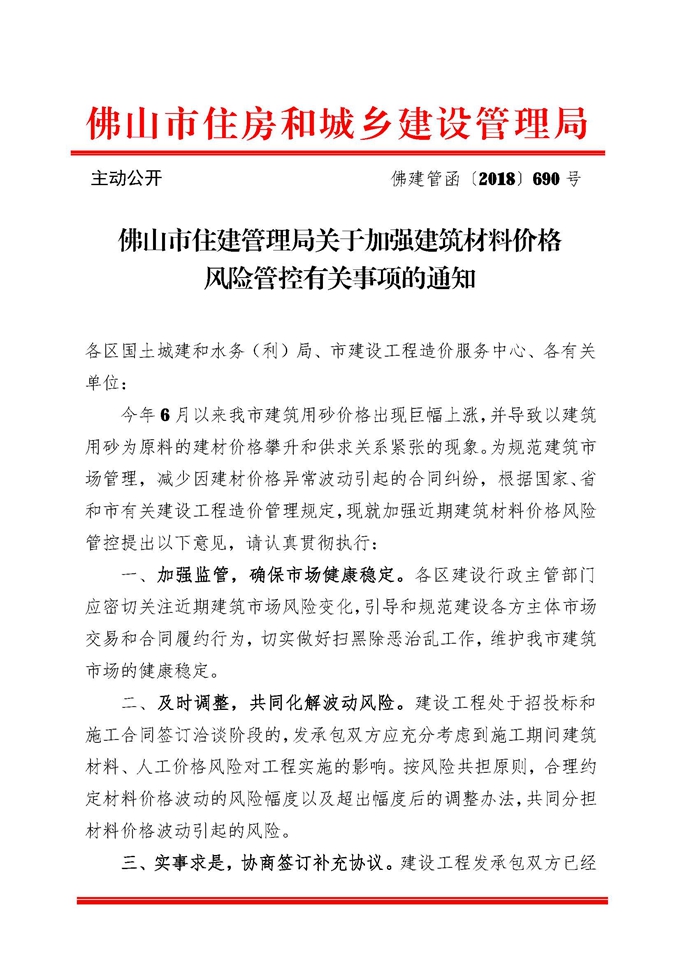佛山市住建管理局關于加強建筑材料價格風險管控有關事項的通知