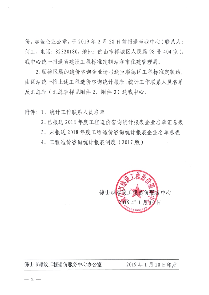 佛山市建設工程造價服務中心轉發市住建管理局關于做好2018年工程造價咨詢統計報表的報送工作通知