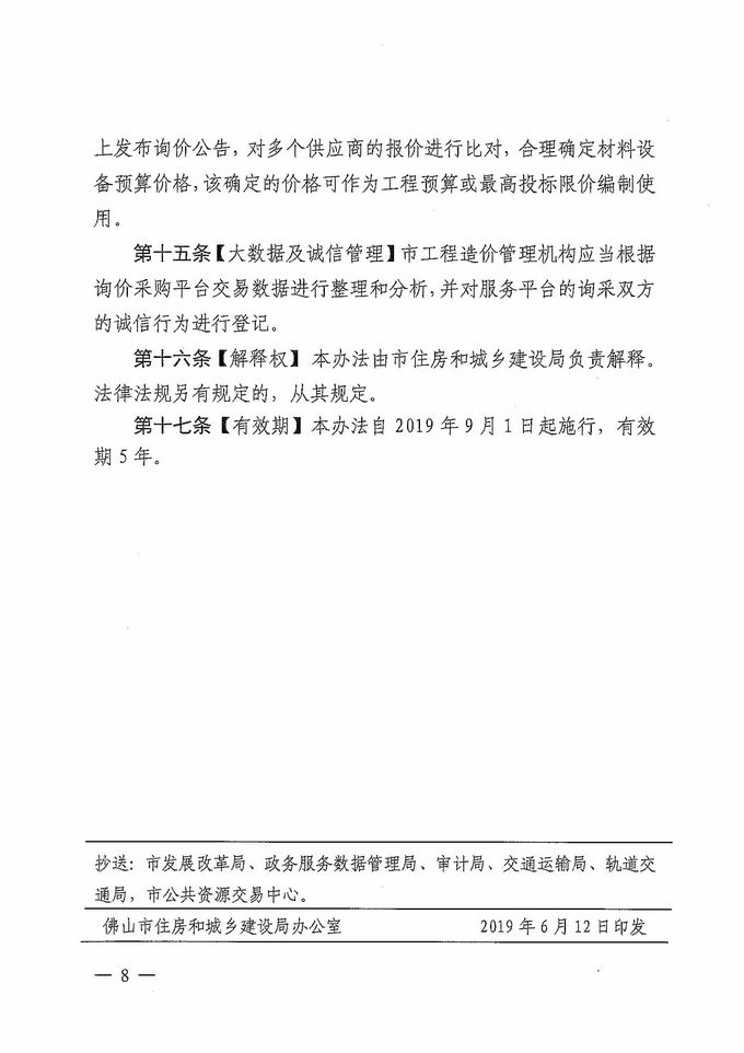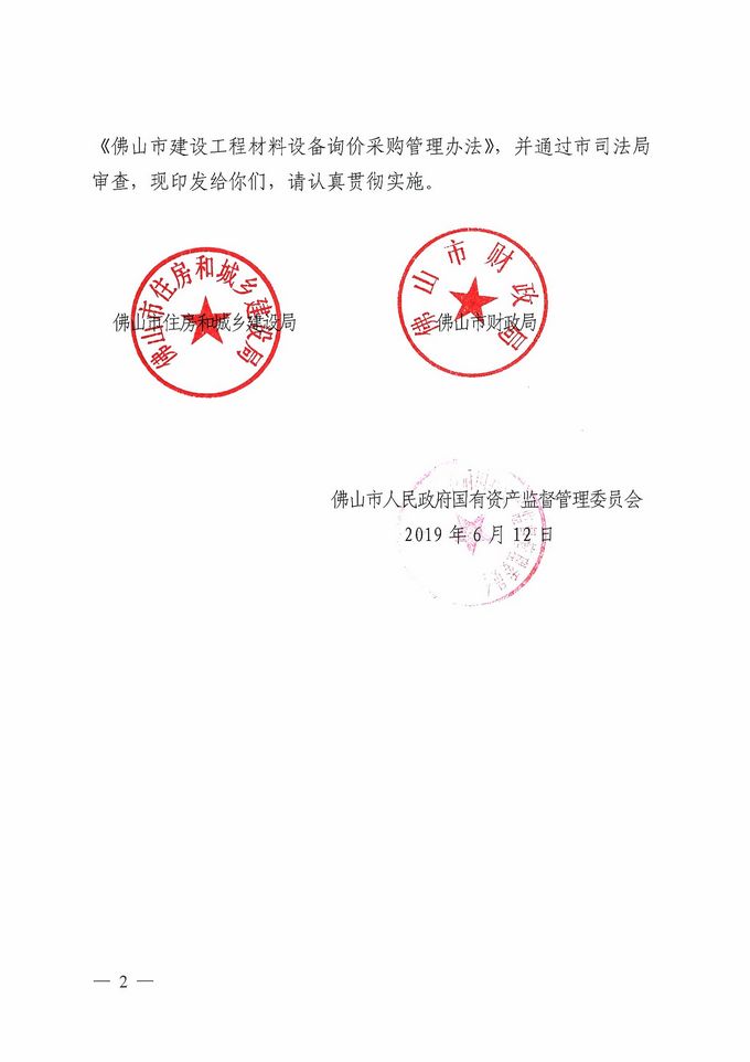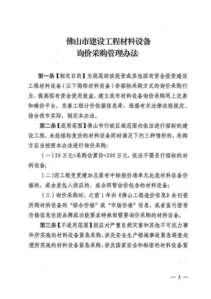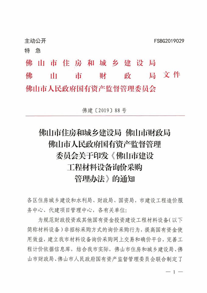 佛山市住房和城鄉建設局 佛山市財政局 佛山市人民政府國有資產監督管理委員會關于印發《佛山市建設工程材料設備詢價采購管理辦法》的通知