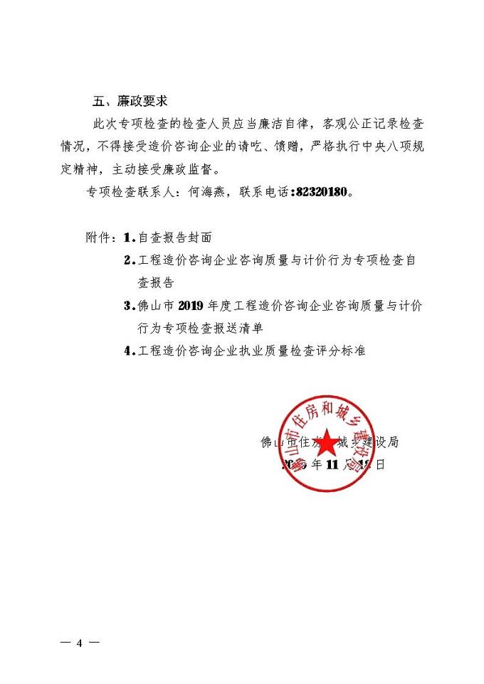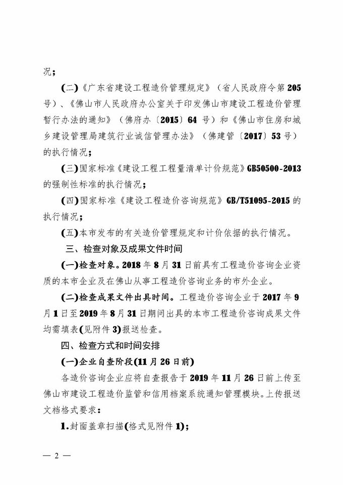 佛山市住房和城鄉建設局關于實施2019年度工程造價咨詢企業造價咨詢質量與計價行為專項檢查安排的通知