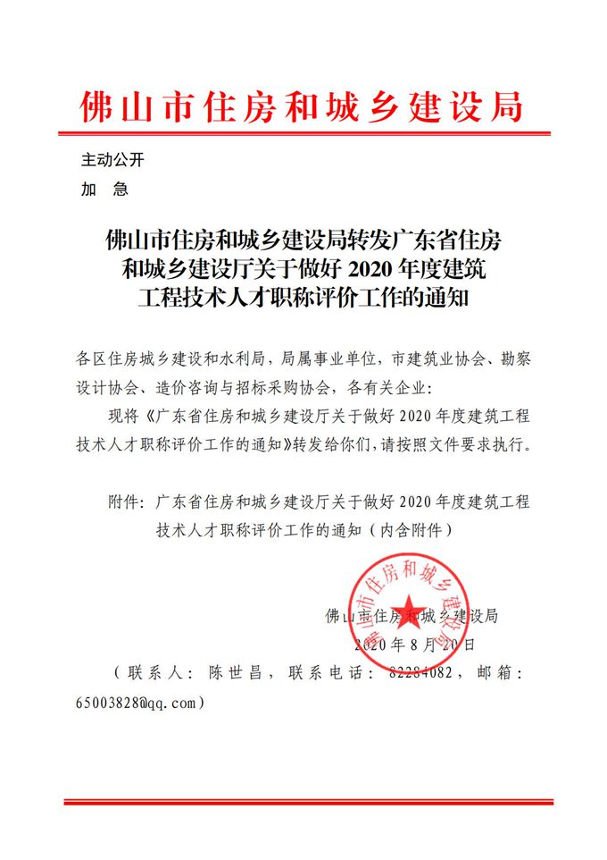 佛山市住房和城鄉(xiāng)建設(shè)局轉(zhuǎn)發(fā)廣東省住房和城鄉(xiāng)建設(shè)廳關(guān)于做好2020年度建筑工程技術(shù)人才職稱評價工作的通知