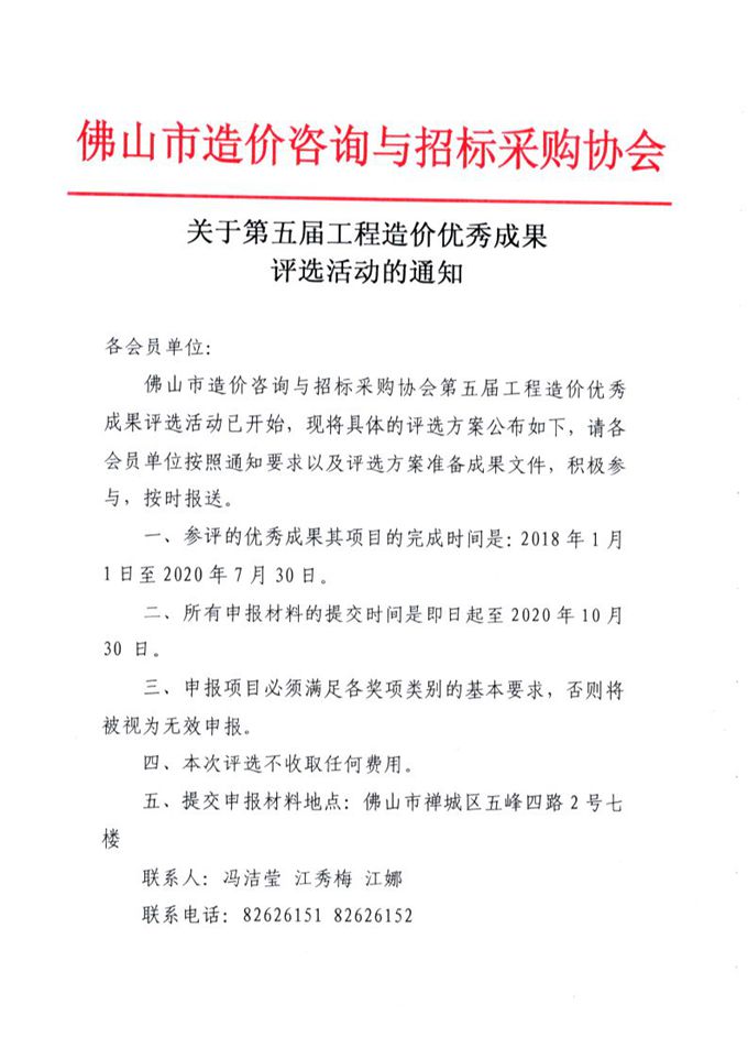 關(guān)于第五屆工程造價(jià)優(yōu)秀成果評選活動(dòng)的通知