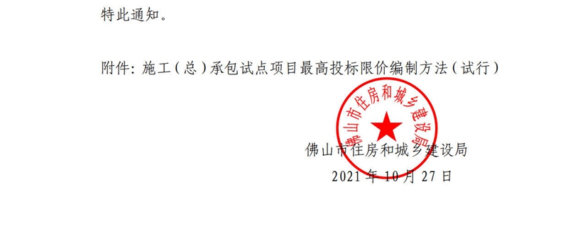 佛山市住房和城鄉建設局關于印發工程造價改革試點項目最高投標限價編制方法的通知