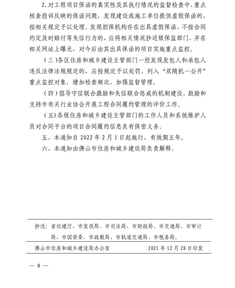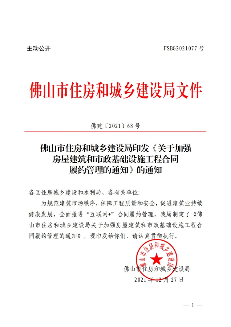 佛山市住房和城鄉(xiāng)建設(shè)局印發(fā)《關(guān)于加強(qiáng)房屋建筑和市政基礎(chǔ)設(shè)施工程合同履約管理的通知》的通知