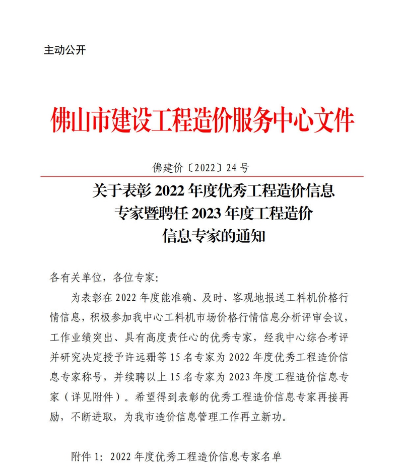 關(guān)于表彰2022年度優(yōu)秀工程造價(jià)信息專(zhuān)家暨聘任2023年度工程造價(jià)信息專(zhuān)家的通知