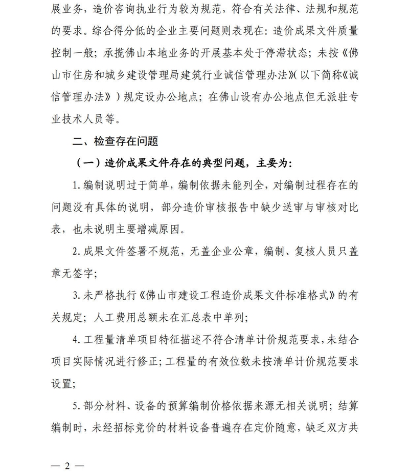 轉(zhuǎn)發(fā) | 佛山市住房和城鄉(xiāng)建設(shè)局關(guān)于2022年度全市工程造價咨詢企業(yè)專項檢查情況的通報