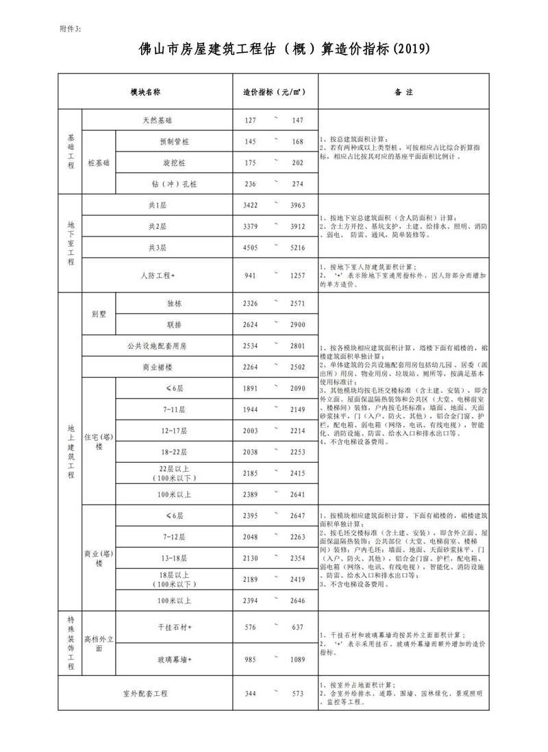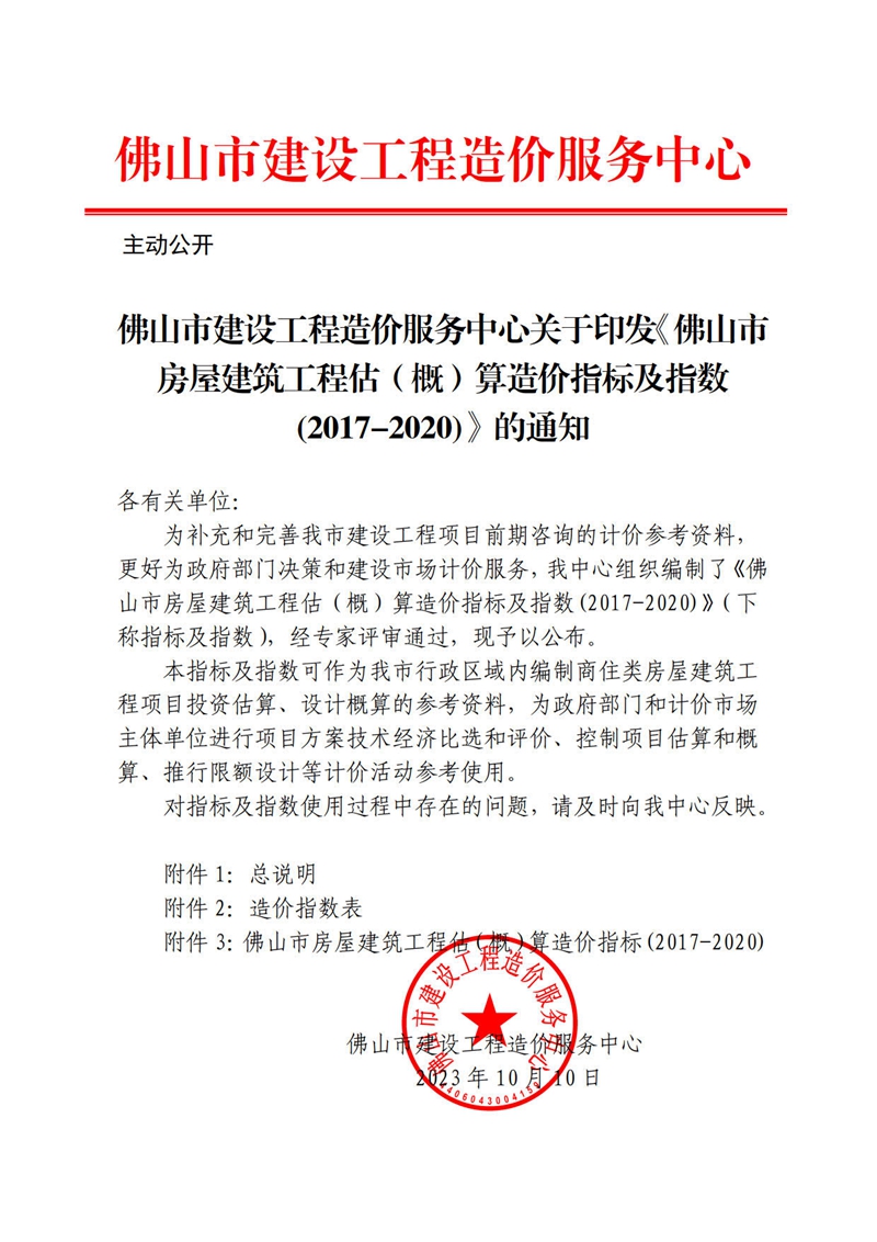 佛山市建設工程造價服務中心關于印發《佛山市房屋建筑工程估(概)算造價指標及指數(2017-2020)》的通知