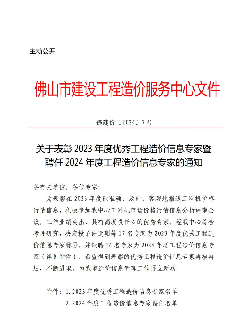 轉發(fā) | 關于表彰2023年度優(yōu)秀工程造價信息專家暨聘任2024年度工程造價信息專家的通知